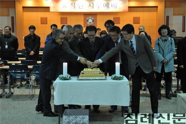 교수, 직원 및 부속·부설기관 직원 150여명이 참석한 가운데 노은석 학생실천처장의 사회로 진행된 이 날 예배는 이형원 교수의 대표기도, 침신유치원 교사들의 특송에 이어 배국원 총장이 “목자의 기쁨”(시23:1~3, 요21:15~17)을 주제로 설교했다.