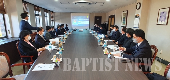우리 교단 총회(총회장 박문수 목사) 의장단과 임원들은 지난 11월 9일 한국침례신학대학교(총장 김선배)를 방문했다. 한국침신대는 의장단을 방문을 환영하고 김선배 총장과 보직교수들이 함께 대학 현안에 대해 보고하고 협력 발전 방안에 대해 논의했다.