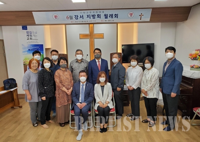 강서지방회(회장 엄기용 목사)는 지난 6월 8일 예수생명교회 본당에서 지난 4월 12일 지병으로 갑작스레 소천한 고 김순희 목사의 후임으로 김석범 목사(한국침신대 신학과)를 예수생명교회 담임목사로 파송하는 임명식을 진행했다. 이날 설교는 엄기용 목사가 전도서 4장 10~12절을 본문으로 말씀을 선포했다.