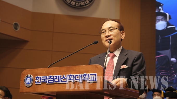 김광수 총장직무대행은 “졸업식에 참석한 졸업생과 내외 귀빈, 학부모들과 목회자, 가족 친지들을 환영하고 축복한다”며 “주 예수 그리스도께서 여러분들과 늘 함께 하시고 역사해 주실 것이라 믿는다. 주 예수를 믿고 믿음으로 미래를 개척하고 도전하기를 바란다”고 권면했다.