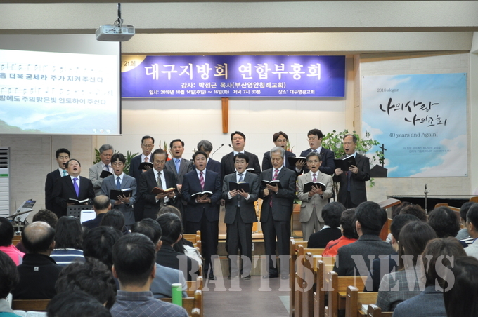대구지방회(회장 이광수 목사)는 지난 10월 14~16일 영광교회(천명기 목사)에서 제21회 연합부흥성회를 개최했다. 대구지방회는 격년제로 개척교회 기금 마련을 위한 부흥성회를 개최하고 있으며 올해에는 박정근 목사(부산영안)를 강사로 초청했다.