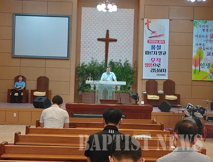 서성래 목사(새샘)는 디모데 전서 6장 11~21절을 본문 말씀으로 코로나 위기와 장기화된 여름 장마로 인해 어려운 상황이지만 목회자가 부르심의 위치를 잊지 말고 말씀을 붙들고 믿음의 선한 싸움을 싸 우자는 말씀을 전했다.