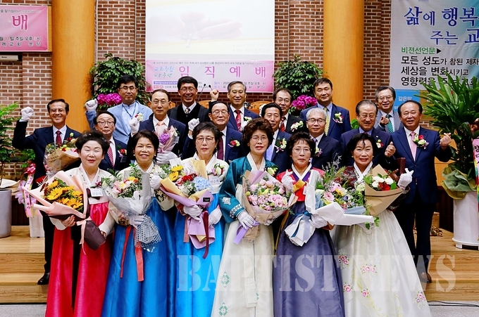 이어 강순애, 조순옥, 송정순, 연순희, 송명옥, 김미자 집사가 권사 임직에 서약한 후 김동호 목사가 회덕교회 권사가 됐음을 선포했다.