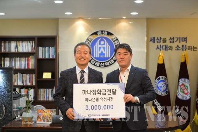 하나은행 유성지점(지점장 안창혁)은 지난 11월 4일 한국침례신학대학교(총장 김선배)에 장학금 300만원을 기탁했다.