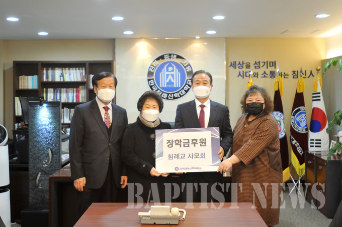 침례교 전국사모회(회장 이창숙 사모)는 지난 3월 2일 한국침례신학대학교(총장 김선배)를 방문하고 장학금 200만원을 전달했다.