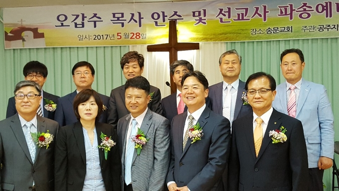 공주지방회(회장 한민호 목사)는 지난 5월 28일 송문교회(문제정 목사)에서 오갑수 전도사(남편 오보근 선교사)의 목사 안수 및 선교사 파송예배를 가졌다.