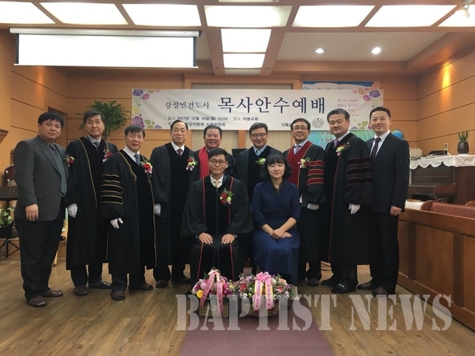 축사에는 김강식 목사(중앙)와 김경수 목사(거두는)가 권면은 김승호 목사(임마누엘)가 전했으며 안수받은 강성민 목사의 축도로 마쳤다. 이날 안수 받은 강성민 목사는 침례신학대학교를 졸업하고 해군본부교회에서 전도사로 사역하며 가족으로는 1남1녀를 두고 있다.