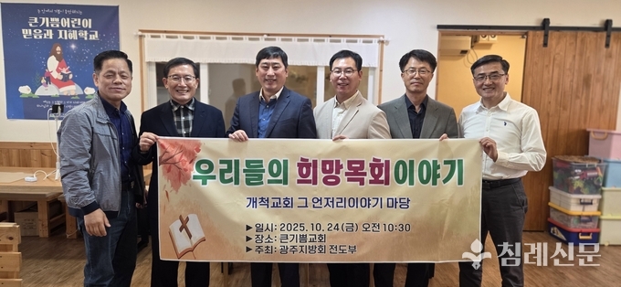 광주지방회(회장 유상철 목사)는 전도부(부장 김경배 목사) 주관으로 큰기쁨침례교회에서 지방회에서 교회를 개척하고 묵묵히 복음의 사역을 감당하고 있는 박병주 목사(큰기쁨)와 김도성 목사(함께세우는), 이형곤 목사(제자비전), 강언덕 목사(늘푸른언덕), 박길삼 목사(에덴) 등이 한 자리에 함께해 개척교회의 현실과 이를 통해 보게된 희망 목회에 대해 이야기를 나눴다. 지방회는 사전에 토론 내용에 대한 질의를 사전 배부해 준비했으며 김경배 목사(성암)의 사회로 현장의 목소리를 담았다.<편집자주>