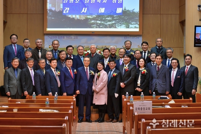 이어 박정복 목사(부산사상영광)의 축복기도와 이충원 원로목사의 취임패 증정으로 목회 승계가 이뤄졌고, 조대식 목사(신태인)의 격려사와 구재원 목사(강북중앙)의 축사 후 3대 담임목사인 김병오 목사가 전임목사에 대한 감사와 일사각오의 정신으로 교회를 섬길 것을 답사한 뒤, 조찬득 목사(에덴 원로)의 축도로 모든 예배를 마쳤다.