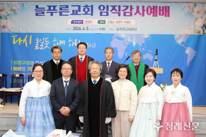 서경지방회(회장 박홍규 목사) 늘푸른침례교회(한유기 목사)는 지난 4월 5일 오후 4시 교회 본당에서 ‘안수집사·권사 임직 감사 예배’를 드렸다.