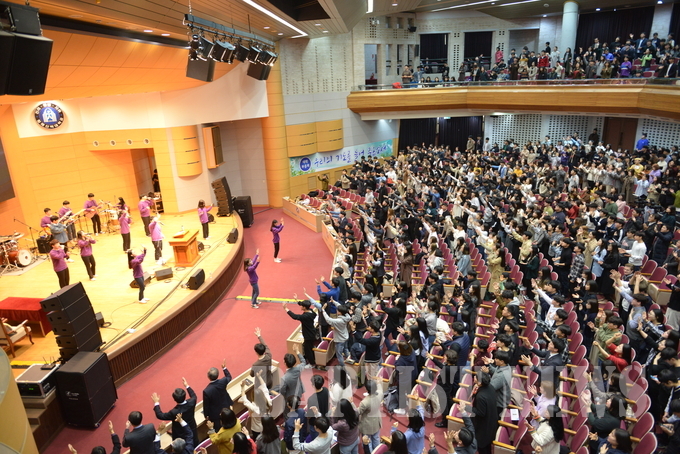 침례신학대학교(총장 김선배)는 신학기를 맞아 지난 3월 19~20일 교단기념대강당에서 “성령의 단비로!”란 주제로 대학부흥회를 진행했다. 이번 부흥회는 이틀간 6차례에 걸쳐 말씀을 전했으며 매시간 대학 찬양팀 ‘샤마’와 ‘브니엘’이 집회를 인도했다. 19일 집회는 손석원 목사가 강사로 나서 “성령과 목회”(빌2:13), “성령을 받으라”(요20:21~22), “성령과 부흥”(고전2:4~5)이란 제목으로 말씀을 전했다.