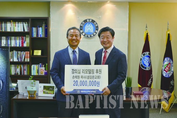 샘깊은교회 손석원 목사는 지난 7월 12일 김선배 총장(침례신학대학교)을 방문하고 대학의 교육환경 개선을 위해 강의실 리모델링비 2000만 원을 후원했다.