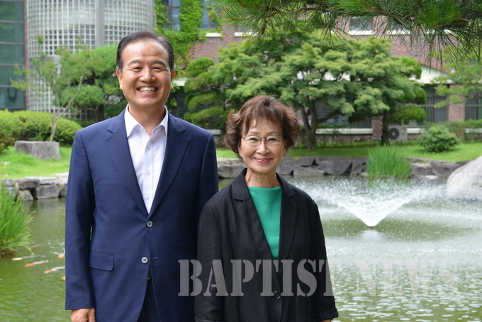 김상범-김경옥 박사(David Kim & Faith Kim, 사진 오른쪽 김경옥 박사)가 침례신학대학교(총장 김선배)에 대학발전기금 1만달러를 후원했다.
