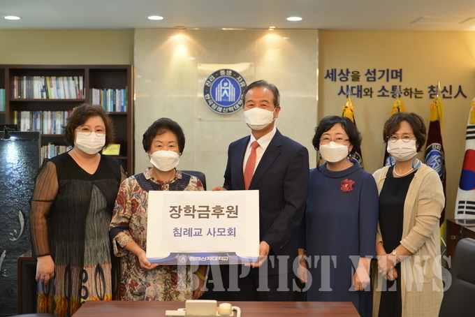 침례교 전국사모회(회장 이창숙, 총무 엄현숙)는 지난 9월 1일 한국침례신학대학교(총장 김선배)를 방문하고 장학금 200만원을 전달했다.