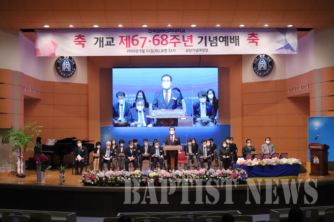 한국침례신학대학교(총장 김선배)는 지난 5월 11일 교단기념 대강장에서 개교 67·68주년 기념예배를 개최했다.
