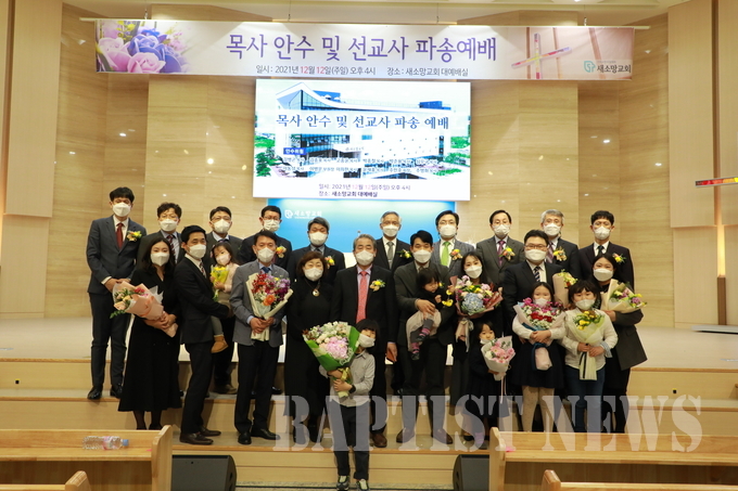 새소망교회(박종철 목사)는 지난 12월 12일 대예배실에서 목사 안수 및 선교사 파송예배를 드렸다. 이날 김현준 목사와 김도희 목사가 각각 안수를 받았다. 선교사 파송식은 김현준, 맹선정 부부가 미얀마 선교사로, 김실라, 이해나 부부가 쿠바 선교사로, 김도희, 심주희 부부가 인도네시아로, 김경태, 박지현 부부가 대만으로 파송을 받았다.