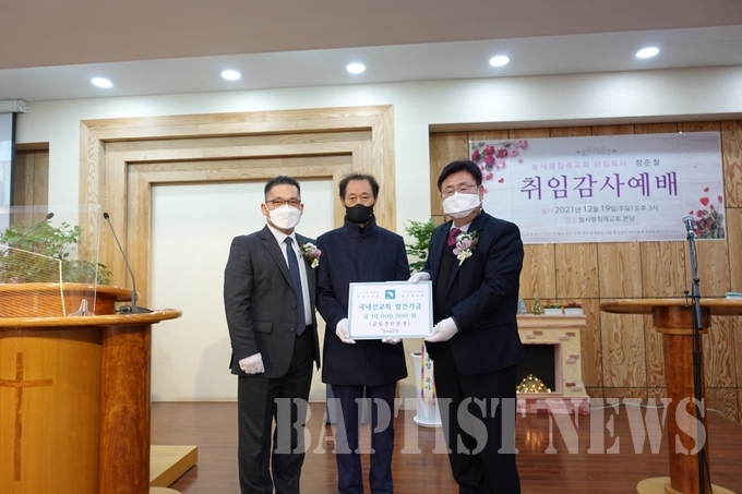 2부 취임예식은 양권순 목사의 사회로 정준철 목사와 늘사랑교회 성도들의 서약, 임석빈 목사(로뎀)의 권면, 한국침례신학대학교 최현서 명예교수와 국내선교회 유지영 회장 등이 축사했다. 특히 이날 늘사랑교회는 국내선교회에 발전기금 1000만원을 전달했다.