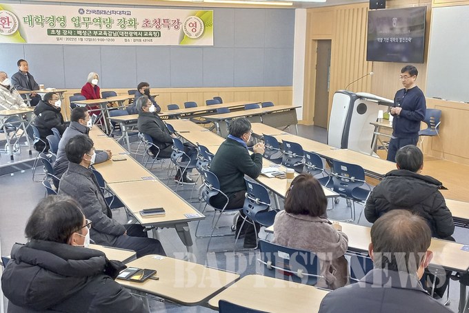 한국침례신학대학교(총장 김선배, 한국침신대)는 2022년 새해를 맞아 지난 1월 12일 대학경영 환경 변화에 대응하는 교·직원의 업무역량 강화를 위한 초청특강을 열었다.