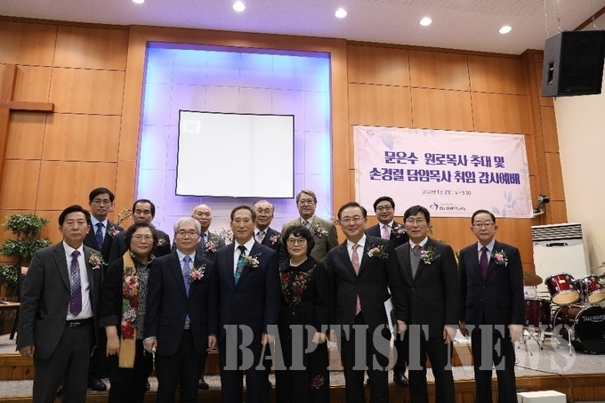 대전대덕지방회(회장 김선복 목사)는 지난 1월 23일 한사랑예전교회 본당에서 문은수 원로목사 추대 및 손경렬 담임목사 취임 감사예배를 드렸다.