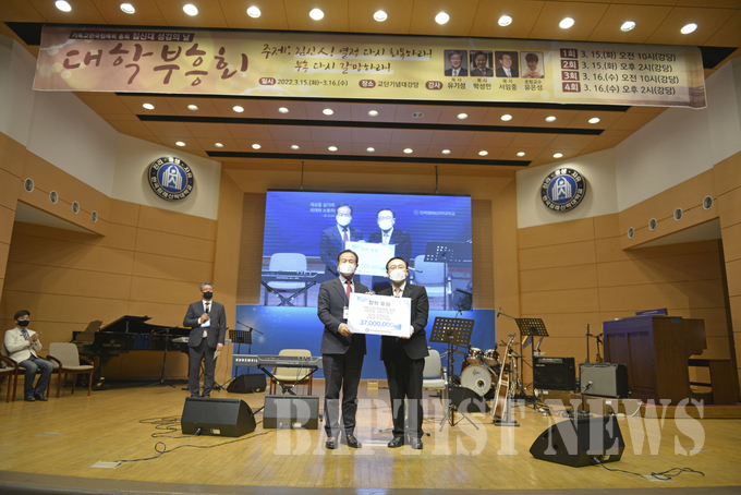 우리교단 총회(총회장 고명진 목사)가 지난 3월 15일~16일 한국침례신학대학교(총장 김선배) 섬김의 날 행사로 7000여 만원을 후원하며 재학생과 교직원들을 섬겼다.