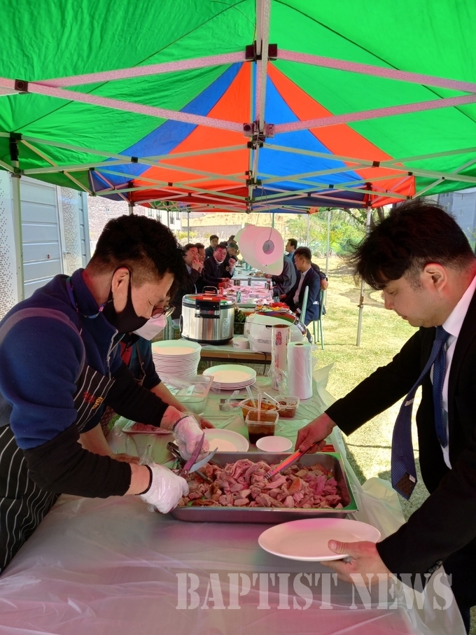 전주지방회는 지난 4월 19일 대흥침례교회(김광혁 목사)에서 4월 월례회를 가졌다. 김대연 목사(서해안)의 은혜로운 말씀을 통해 다시 한 번 힘을 얻는 시간을 가졌으며 양성모 목사(두드린)의 축도로 예배를 마쳤다. 점심은 대흥침례교회에서 바비큐 파티를 준비했다.