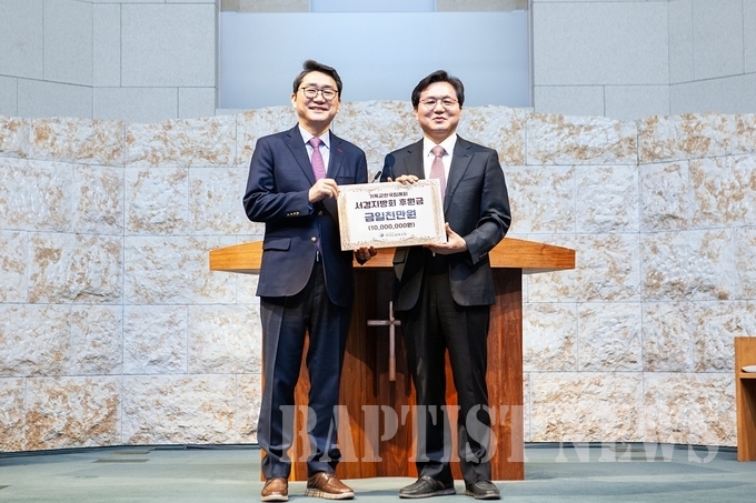 여의도교회(국명호 목사, 사진 왼쪽)는 지난 5월 2일 교회 속한 서경지방회(회장 국진호 목사)에 1000만원의 후원헌금을 전달했다.