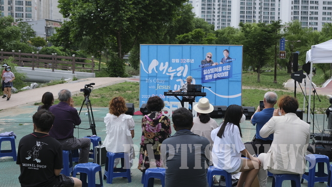 강동지방회(회장 최길헌 목사) 소속 새누리교회(황영기 목사)는 지난 6월 26일 죽전 탄천변에서 교회 창립 32주년을 맞아 ‘일상회복을 위한 힐링 음악여행’을 개최했다.