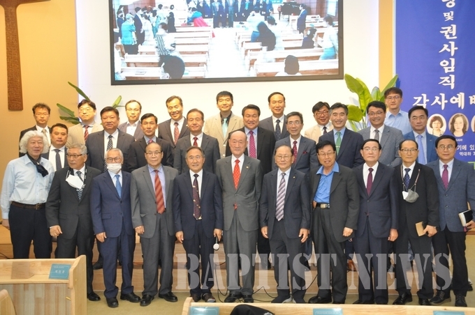 이날 헌당예배와 권사 임직예배는 조찬득 목사의 사회로 시작해 한국침례신학대학교 김선배 총장이 “함께 지어져 가는 교회”란 제목으로 말씀을 전했다.