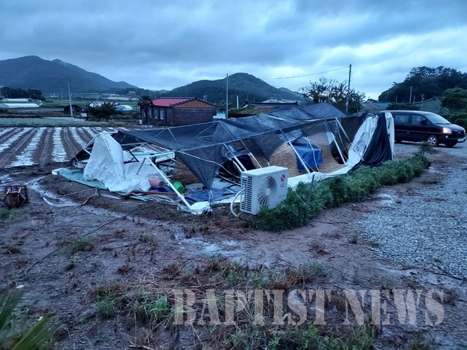 사택지붕과 교회간판,진도선교센터에 각각 피해를 입었다고 김 목사는 전했다.