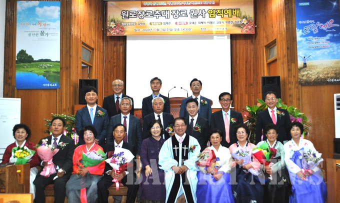 이날 교회는 임직식을 통해 김학상 장로를 원로장로에 추대하고, 임재수 집사를 장로로, 오태순 최혜자 이영분 강영자 박춘연 김은희 집사를 권사로 임직했다.