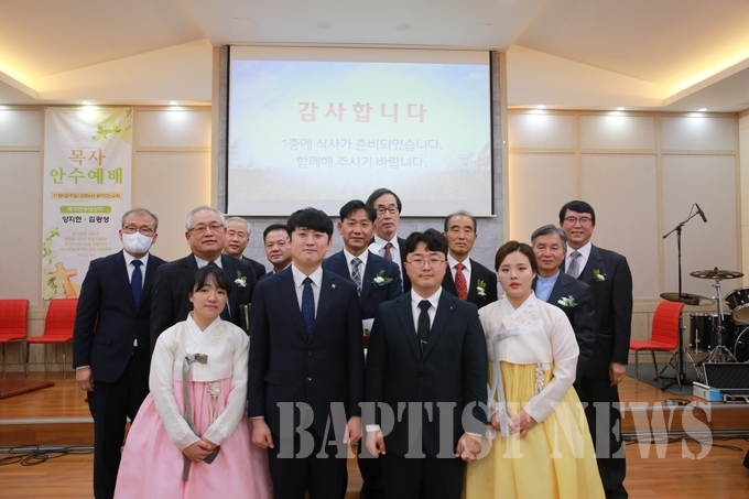 안수례 후 김광성 전도사와 양지현 전도사의 기독교한국침례회 목사가 됐음을 알리고 지방회장 한경훈 목사가 안수패를 증정했다. 이어 김주만 목사(소망) 유덕봉 목사(옥천중앙)가 권면을, 김일묵 목사(서정) 임완철 목사(가풍)가 축사를 했다. 끝으로 꿈이있는교회 협동목사인 김종배 목사의 축도로 모든 안수식을 마쳤다.