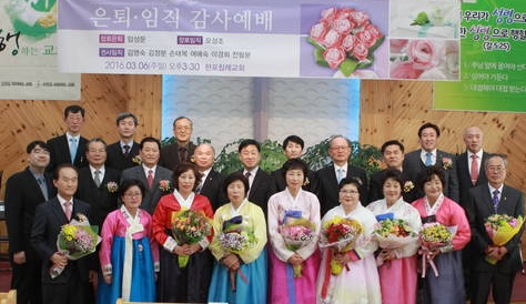 울릉지방회(회장 김차곤 목사)는 지난 3월 6일 현포교회(김영곤 목사)에서 장로 은퇴 및 안수집사(호칭장로) 권사 임식 감사예배를 가졌다. 1부 예배는 김영곤 목사의 사회로 구자동 목사(중령)의 기도, 김경조 목사(구암)의 성경봉독, 울릉지방회 여선교 연합회 임원들의 특송이 있은 뒤, 시취위원장 하상선 목사(저동)가 “사혜합결(蛇慧?潔)”(마 10:16)이란 제목으로 임직자들에게 새로운 도전과 임직자들의 바른 자세를 증거하여 함께 은혜를 나눴다.