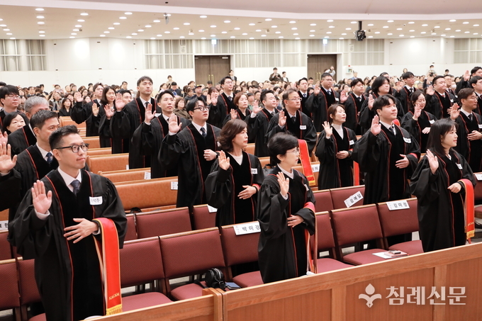 연합회장 송용필 목사는 “섬김을 받으러 온 것이 아니라 섬기러 왔다고 말씀하신 예수님을 본받아 평생 남을 섬기며 살아가기로 결심하는 자리가 되길 바란다”면서 “진리의 복음을 들고 세상으로 나아가야 하는 막중한 책임을 진 여러분 모두가 예수님처럼 이웃을 사랑하고 무엇보다 섬기는 사람이 되길 주님의 이름으로 간절히 축원한다”고 축복했다.