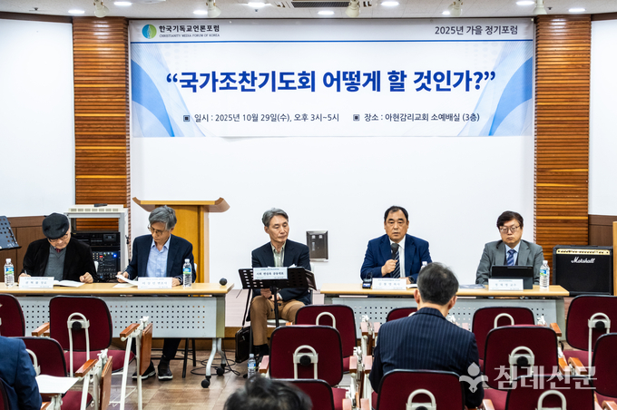 한국기독교언론포럼(이사장 지형은, 한기언)은 지난 10월 29일 아현감리교회 소예배실에서 “국가조찬기도회 어떻게 할 것인가?”를 주제로 가을 정기포럼을 열었다. 사회는 변상욱 공동대표가 맡았고, 김철영 목사(기공협 상임대표), 이상민 변호사(기윤실 공동대표), 정재영 교수(실천신대), 권혁률 장로(전 교회협 언론위원장)가 차례로 발제했다.
