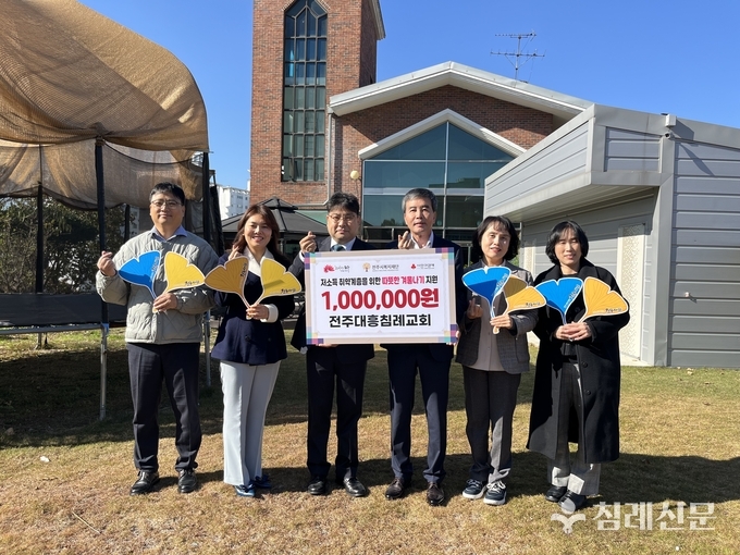 전주대흥침례교회(김규태 목사)는 지난 11월 14일 전주시복지재단(이사장 윤방섭)에 성금 100만원을 기부하며 취약계층 월동 사역을 지원하며 이웃 사랑을 실천했다.