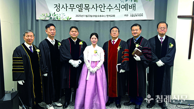 서울남북지방회(회장 김승호 목사) 지난해 11월 23일 반석침례교회(김종수 목사)에서 정사무엘 전도사의 목사 안수식을 진행했다.