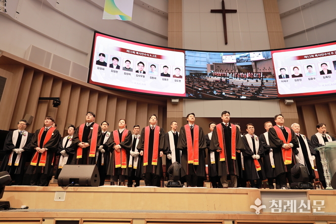 이날 목사 안수식은 전기철 목사의 인도로 김승욱 목사가 안수자들을 위해 대표로 기도하고 전옥표 목사(충만한)가 성경을 봉독한 뒤, 김상복 목사(할렐루야 원로)가 “왜 날 사랑하시나”(요 3:14~17)란 제목으로 설교했다.