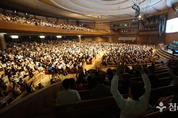 주일 저녁 6시가 넘은 시간, 연세중앙침례교회(윤석전 목사) 주일 4부 예배가 끝나서 성도들이 예배당을 나서고 있었다. 예루살렘성전 본당은 가득 메웠던 성도들은 삼삼오오 이야기를 나누며 발걸음을 서둘렀다. 4부 예배를 드리고 가는 성도들과 5부 예배를 드리기 위해 오는 성도들이 교회 주변에서 인산인해를 이루며 어둠이 깔리는 시간이지만 인파의 불빛이 장관을 이루고 있었다. 예배당은 주님 앞으로 나아오는 성도들의 힘찬 발걸음 소리로 가득찼다. 교회 주변을 산책하고 담소를 나누는 이들이 계속 시간을 확인하며 다니고 있었다. 무엇보다 늦은 시간인데도 다시 교회로 발걸음을 옮기는 이들도 있었다. 교회 본당의 대부분 좌석도 이미 성도들이 자리잡았다. 대부분은 말씀을 묵상하거나 기도하는 이들이 있었고 옆 성도들과 함께 대화를 나누고 교회 리더자들은 전화하며 언제 교회에 오는지를 확인하고 있었다. 계속해서 들어오는 성도들, 청년들, 심지어 중고등학교 학생까지 본당의 좌석은 점점 채워지고 있었다. 영혼을 사랑하는 마음, 감사하는 마음, 여전히 부족하지만 나를 일으켜 세우신 성령의 역사를 간증으로 나누고 있었다. 꽤 늦은 시간이었지만 함께 서로를 위로하고 격려하며 웃으며 또